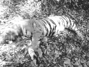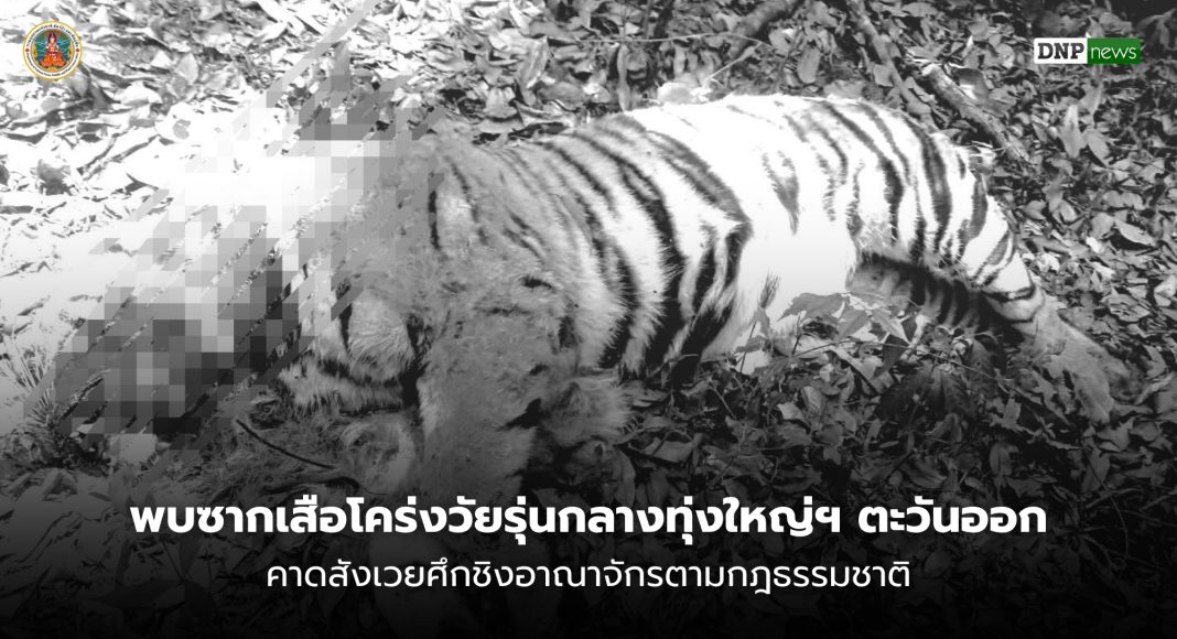 นายพนัชกร โพธิบัณฑิต ผู้อำนวยการสำนักบริหารพื้นที่อนุรักษ์ที่ 14 (ตาก) เปิดเผยว่า เจ้าหน้าที่เขตรักษาพันธุ์สัตว์ป่าทุ่งใหญ่นเรศวรด้านตะวันออก รายงานการตรวจพบซากเสือโคร่งเพศเมียวัยรุ่นกลางป่าห้วยลากาเบิงเล็ก สภาพพบบาดแผลถูกกัดกระจุยทั่วตัว คาดเสียชีวิตจากการต่อสู้กับเสือเจ้าถิ่นเพื่อแย่งชิงอาณาเขตตามสัญชาตญาณสัตว์ป่า เร่งเผาทำลายซากทันทีตามระเบียบกรมอุทยานฯ เพื่อตัดวงจรโรคระบาดและป้องกันการโจรกรรมชิ้นส่วน