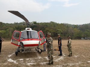ในภารกิจนี้ ได้รับการสนับสนุนอากาศยาน (เฮลิคอปเตอร์) จากสำนักการบิน กระทรวงทรัพยากรธรรมชาติและสิ่งแวดล้อม เพื่อเพิ่มประสิทธิภาพในการควบคุมไฟในพื้นที่สูงชันและเข้าถึงยาก โดยมีการปฏิบัติการโปรยน้ำสนับสนุนทางอากาศรวม 15 เที่ยวบิน ช่วยลดความร้อนและความรุนแรงของไฟป่าได้อย่างมีนัยสำคัญ