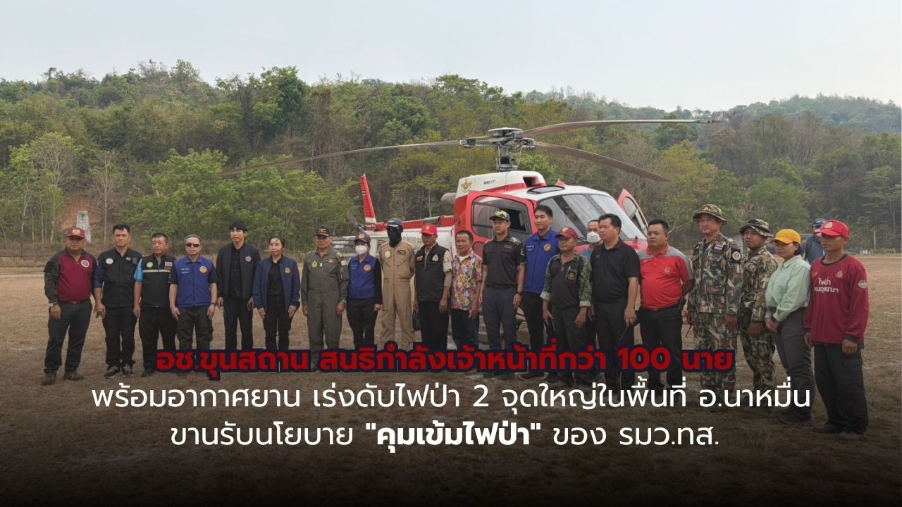ล่าสุด เมื่อวันที่ 21 เมษายน 2569 นายเกริกฤทธิ์ ศรีสุวอ หัวหน้าอุทยานแห่งชาติขุนสถาน พร้อมด้วยนางสาวจิราภา วานิชดิลกรัตน์ ผู้ช่วยหัวหน้าอุทยานฯ ได้นำกำลังเจ้าหน้าที่ ศปก.ฟป.อช.ขุนสถาน (PA) สนธิกำลังร่วมกับ ฝ่ายปกครองอำเภอนาหมื่น สำนักงานทรัพยากรธรรมชาติและสิ่งแวดล้อมจังหวัด (ทสจ.) และเครือข่ายเฝ้าระวังไฟป่าภาคประชาชน รวมกำลังพลภาคพื้นดินกว่า 100 นาย เข้าปฏิบัติการสกัดกั้นเพลิงในพื้นที่เป้าหมาย 2 จุดสำคัญ คือ บริเวณบ้านสันป่าสัก ต.นาทะนุง และบ้านน้ำลีใต้ ต.ปิงหลวง อ.นาหมื่น จ.น่าน