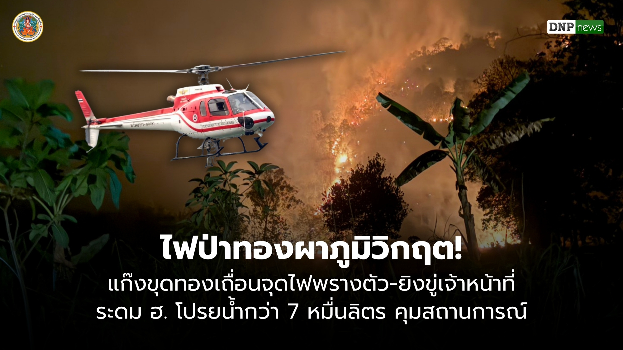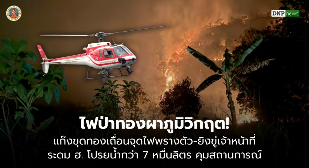 ในส่วนปฏิบัติการดับไฟ ได้มีการระดมอากาศยานเฮลิคอปเตอร์จากศูนย์เทคโนโลยีดิจิทัลและอากาศยาน กระทรวงทรัพยากรธรรมชาติและสิ่งแวดล้อม เข้าทิ้งน้ำแล้วกว่า 141 เที่ยวบิน คิดเป็นปริมาณน้ำรวม 70,500 ลิตร พร้อมส่งกำลังเจ้าหน้าที่เข้าปฏิบัติการดับไฟในป่าลึกทางอากาศอีก 3 เที่ยวบิน ทั้งนี้ เมื่อปี 2568 อุทยานฯ เคยประสบความสำเร็จในการลดจุดความร้อนได้ถึง 85.30% จากการจัดตั้ง War Room แต่ในปี 2569 นี้กลับเผชิญความท้าทายที่ซับซ้อนขึ้น เนื่องจากกลุ่มผู้กระทำผิดปรับแผนเป็น “เข้าดึก ขุดเร็ว หนีไว” ต่างจากปีที่ผ่านมา ซึ่งสามารถดำเนินคดีได้ 6 คดี และจับกุมผู้ต้องหาได้ 11 คน