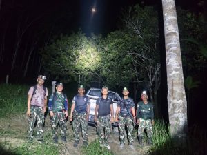 อย่างไรก็ตาม ในพื้นที่หมู่ 2 บ้านสนี ต.ทุ่งพอ เจ้าหน้าที่ชุดที่ 2 และชุดเคลื่อนที่เร็วได้รับแจ้งเหตุจากราษฎรว่าพบร่องรอยการเข้าหากินของช้างป่า จึงได้สนธิกำลังร่วมกับผู้ใหญ่บ้าน ผู้ช่วยผู้ใหญ่บ้าน และเครือข่ายภาคประชาชนเข้าตรวจสอบเหตุทันที จากการลงพื้นที่บริเวณสวนยางพาราของชาวบ้าน (สวนยางเปาะแมและสวนยางบังเลาะ) พบโขลงช้างป่าชุดใหม่รวม 5 ตัว เป็นเพศเมีย 4 ตัว และมีลูกช้างตัวน้อยอายุประมาณ 2 เดือนรวมอยู่ด้วย 1 ตัว โดยพบร่องรอยมูลและรอยเท้าชัดเจนที่พิกัด 47N 706548 E 722162 N