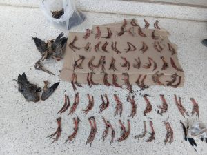 ตรวจสอบพบชาย 1 คน ขับขี่รถจักรยานยนต์ ไม่ทราบยี่ห้อ ไม่ปรากฏหมายเลขทะเบียน พร้อมสะพายอาวุธปืน จึงแสดงตนเป็นเจ้าหน้าที่ขอตรวจค้น ทราบชื่อภายหลังคือ นายอุเทน (สงวนนามสกุล) พบของกลางและอุปกรณ์การกระทำผิด 4 รายการ ได้แก่ ซากนกกระสาแดง (Ardea purpurea) สัตว์ป่าคุ้มครองจำพวกนก ลำดับที่ 113 จำนวน 2 ซาก ซากตีนนกอีโก้ง (Porphyrio poliocephalus) สัตว์ป่าคุ้มครองจำพวกนก ลำดับที่ 832 จำนวน 52 คู่ อาวุธปืนขนาด 22 ติดลำกล้อง จำนวน 1 กระบอก และเครื่องกระสุนปืนขนาด 22 จำนวน 25 นัด