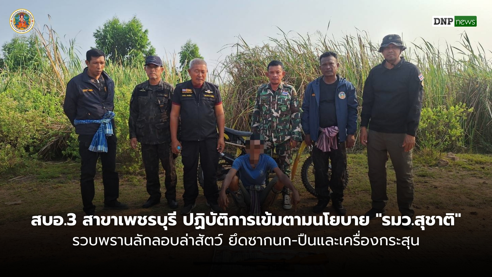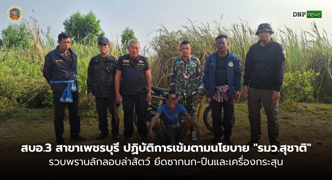 สบอ.3 สาขาเพชรบุรี ปฏิบัติการเข้มตามนโยบาย “รมว.สุชาติ” รวบพรานลักลอบล่าสัตว์ ยึดซากนก-ปืนและเครื่องกระสุน หลังได้รับแจ้งจากผู้หวังรางวัลนำจับ