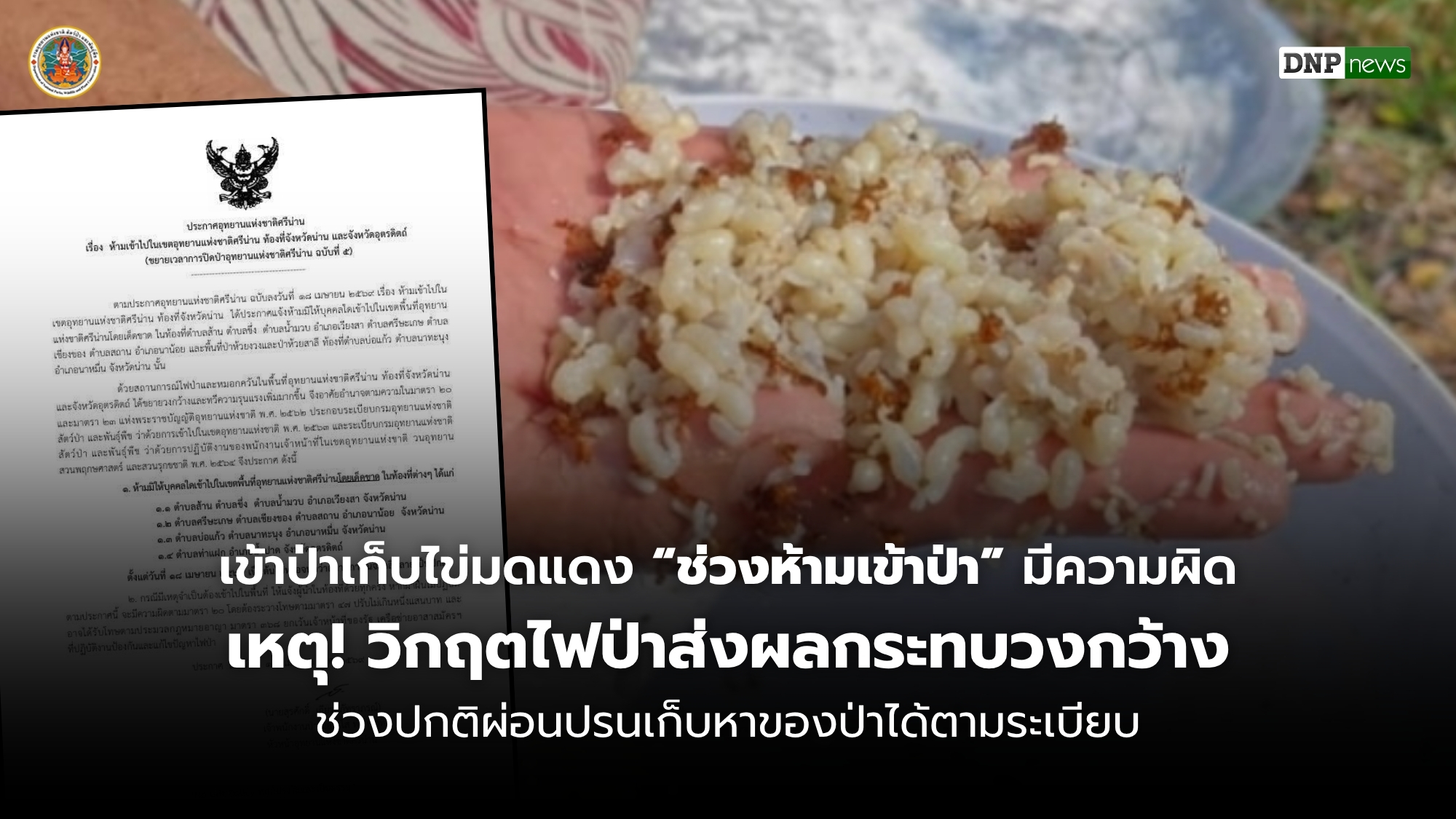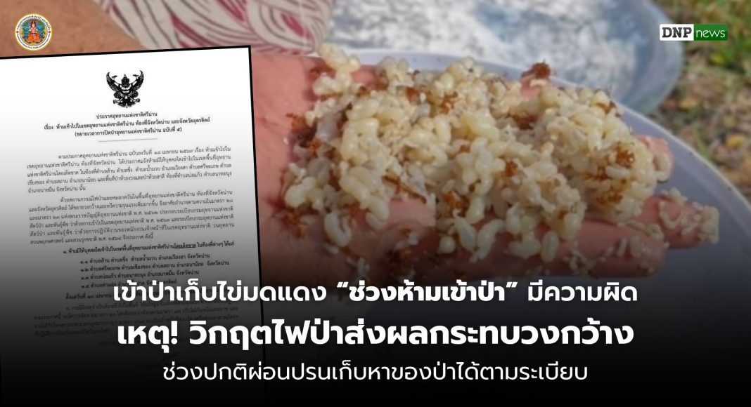 กรมอุทยานฯ แจงจับคนหาไข่มดแดง ย้ำ! “ช่วงปิดป่า” เหตุวิกฤตไฟป่า​ส่งผลกระทบวงกว้าง ยืนยัน! ช่วงปกติผ่อนปรนให้ชาวบ้านเก็บหาของป่าได้ตามระเบียบ