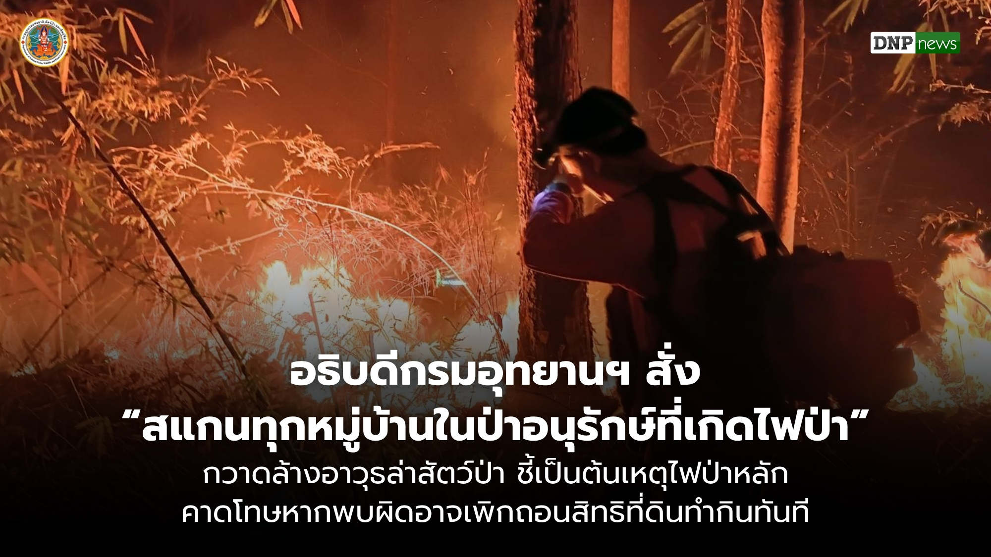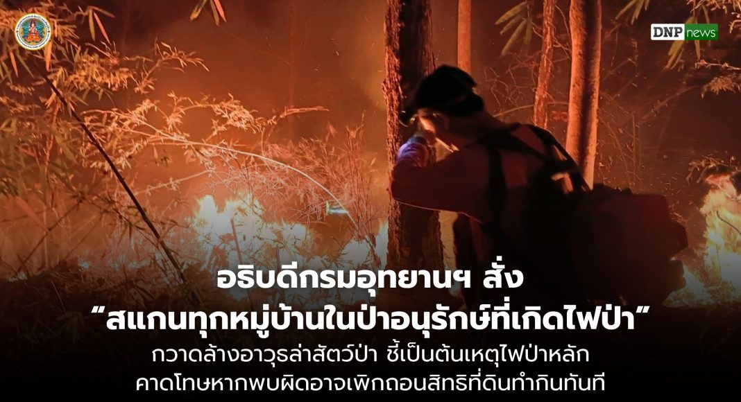 เมื่อวันที่ 24 เมษายน 2569 นายอรรถพล เจริญชันษา อธิบดีกรมอุทยานแห่งชาติ สัตว์ป่า และพันธุ์พืช มอบนโยบายเร่งด่วนแก่หัวหน้าหน่วยงานทั่วประเทศ สั่งยกระดับการควบคุมพื้นที่ป่าอนุรักษ์เชิงรุก คัดกรองบุคคลเข้าพื้นที่เข้มงวด พร้อมเปิดมาตรการ “สแกนทุกหมู่บ้านในป่าอนุรักษ์ที่เกิดไฟป่า” กวาดล้างอุปกรณ์ล่าสัตว์ หลังพบความเชื่อมโยงว่าเป็นสาเหตุหลักของการเกิดจุดความร้อน (Hotspot) และไฟป่า