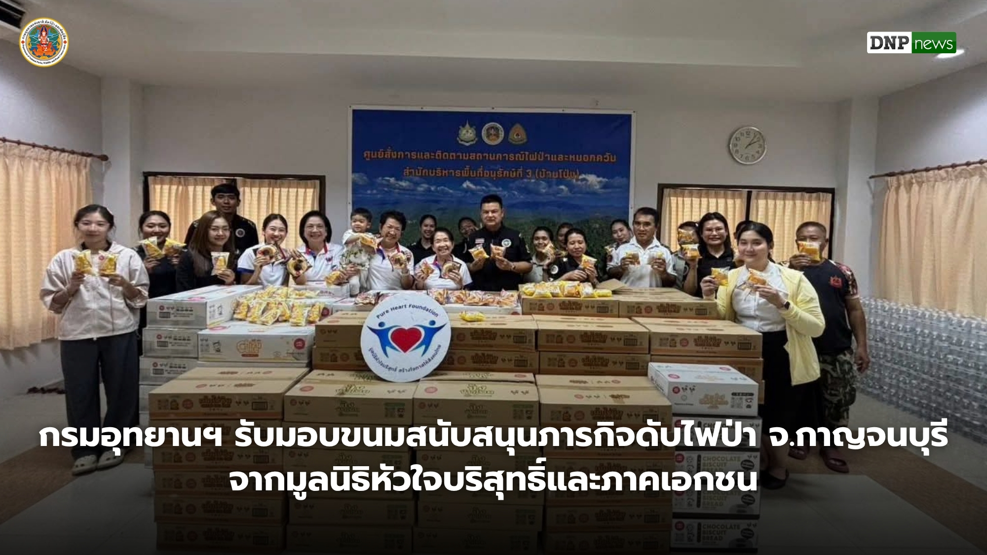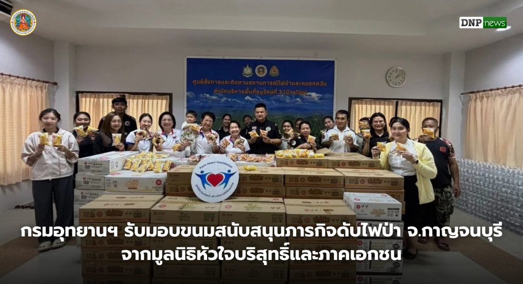 กรมอุทยานฯ รับมอบขนมสนับสนุนภารกิจดับไฟป่า จ.กาญจนบุรี จากมูลนิธิหัวใจบริสุทธิ์และภาคเอกชน