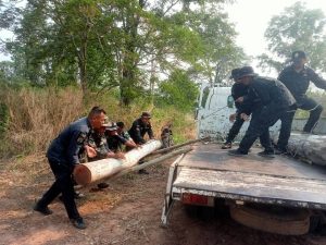 นายรัชพล พยุงสิน หัวหน้าหน่วยพิทักษ์ทรัพยากรป่าไม้และสัตว์ป่าเขากระโดง รายงานว่า เมื่อเวลาประมาณ 05.00 น. (26 เมษายน 2569) ขณะเจ้าหน้าที่ชุดลาดตระเวนร่วมเข้าตรวจสอบพื้นที่บริเวณซอยเชวงศักดิ์ และป่าทางทิศใต้บ้านป่าไม้สหกรณ์ ต.โนนดินแดง พบกลุ่มชายฉกรรจ์จำนวน 3 คน กำลังใช้รถจักรยานยนต์ดัดแปลงชักลากไม้ยูคาลิปตัสออกจากป่าอย่างไม่เกรงกลัวกฎหมาย ทันทีที่กลุ่มผู้กระทำผิดเห็นเจ้าหน้าที่เข้าประชิด ได้อาศัยความชำนาญทางทิ้งของกลางและรถจักรยานยนต์วิ่งหลบหนีเข้าป่าลึกอย่างรวดเร็ว แม้เจ้าหน้าที่พยายามไล่ติดตามแต่ไม่สามารถจับกุมตัวได้ เนื่องจากสภาพภูมิประเทศเป็นอุปสรรค