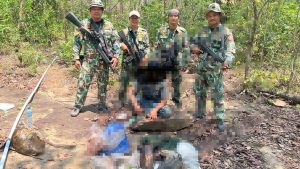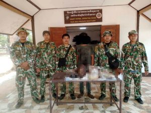 กระทั่งเวลาประมาณ 10.35 น. ขณะเจ้าหน้าที่ลาดตระเวนมาถึงบริเวณป่าทางทิศใต้บ้านคูสี่แจ ซึ่งเป็นพื้นที่เขตรักษาพันธุ์สัตว์ป่าห้วยศาลา ทับซ้อนเขตป่าถาวรตามมติ ครม. (ป่าฝั่งซ้ายห้วยศาลา) ท้องที่ตำบลดงรัก อำเภอภูสิงห์ จังหวัดศรีสะเกษ ห่างจากแนวเขตหมู่บ้านเข้าไปในป่าลึกประมาณ 1.5 กิโลเมตร เจ้าหน้าที่ได้ตรวจพบชายต้องสงสัย จึงแสดงตัวเข้าขอตรวจค้น